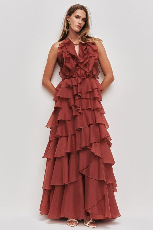 Aje Cleo Gown in Rust