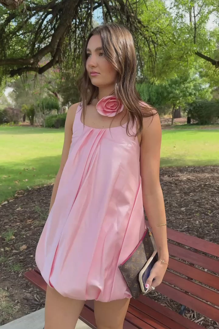 Leo Lin Suki Puff Mini Dress in Blush Pink