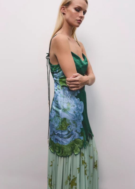 • Silk linen satin with a contrast of viscose georgette
