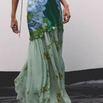 • Gathering at skirt seam for a waterfall effect with full hem