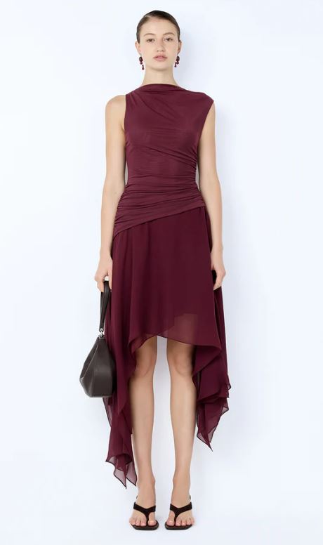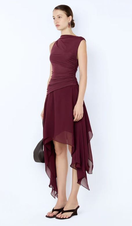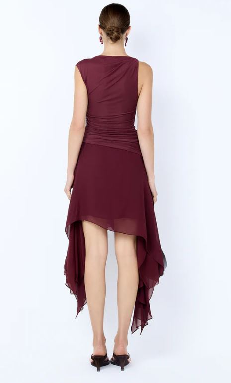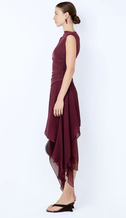 Bec and Bridge Nico Asym Midi Dress in Blackberry