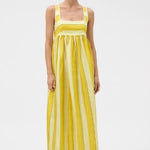 The Slub Silk Stripe Sundress is designed in silk dupion for a lustrous finish. Featuring a square neckline, fitted bodice, and gathered skirt, this empire-line maxi dress exudes effortless femininity with a soft, romantic silhouette.