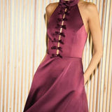 Rebecca Vallance's dress is detailed with pretty bows along the fitted bodice - a thoughtful element that adds sweet femininity. It's made from duchesse-satin and has a halterneck and flowing midi skirt.