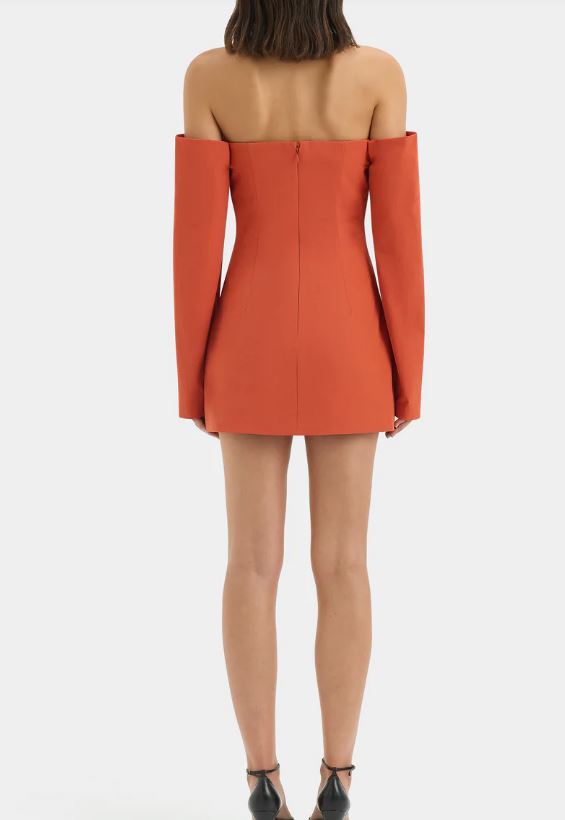 Sir Rossana Off Shoulder Mini Dress in Terracotta